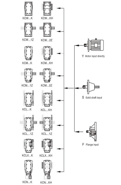 1. KC series helical-bevel gearmotor is the combination transmission structure of helical gears and spiral bevel gears, with large transmission torque and steady running